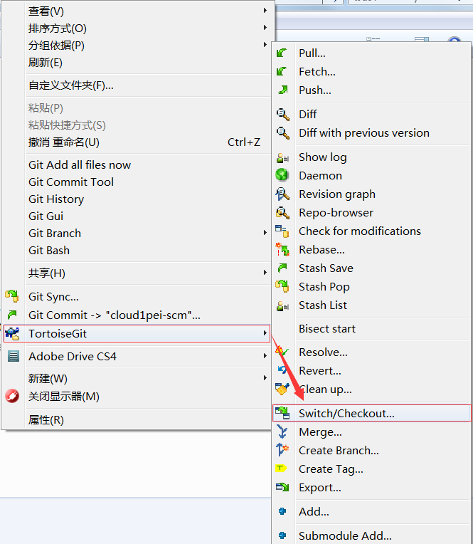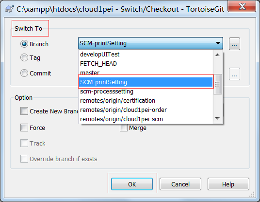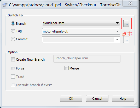 第二步:通过“Switch/Checkout”切换到新创建的分支上,点击OK: