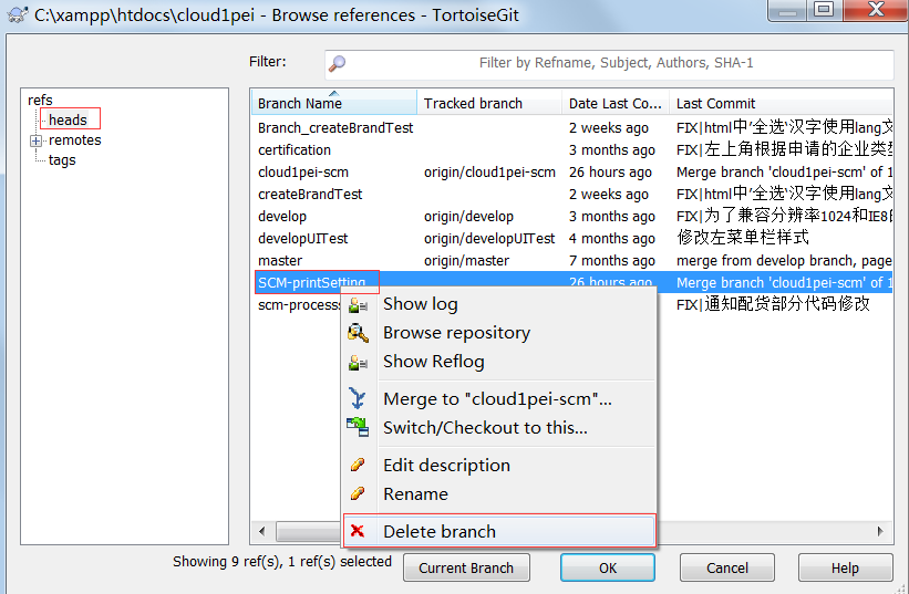 第六步:删除分支