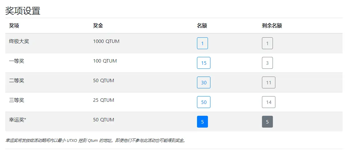 Qtum全节点超级大奖占剩余奖项的3.5%,