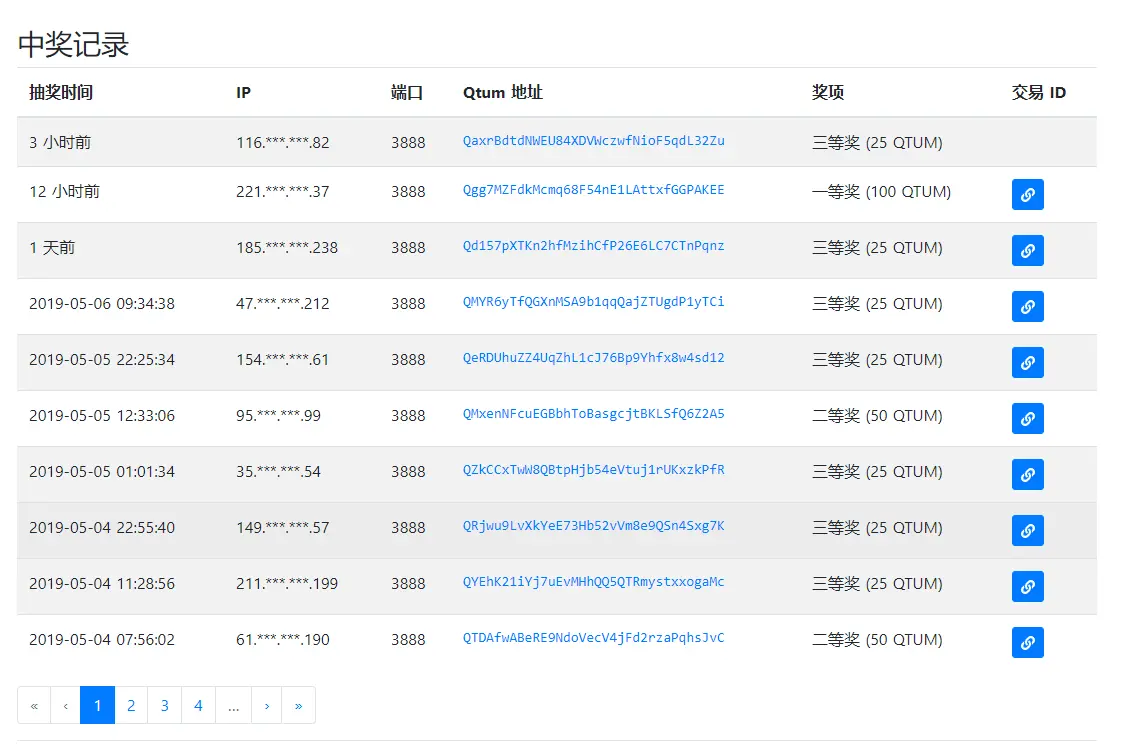 4月12日,Qtum量子链发布了全节点激励计划,截止目前共抽出了67个幸运儿,共计送出了3050枚QTUM,奖励还在持续发放中,机会多多,超级大奖1000QTUM还在奖池之中,等待你的参与!