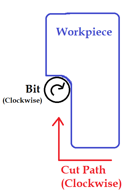 答:从你的插图来看,你需要一个用于爬铣的CNC程序来产生更好的表面光洁度,并且主轴应该始终以顺时针方向移动,而不是反向旋转。