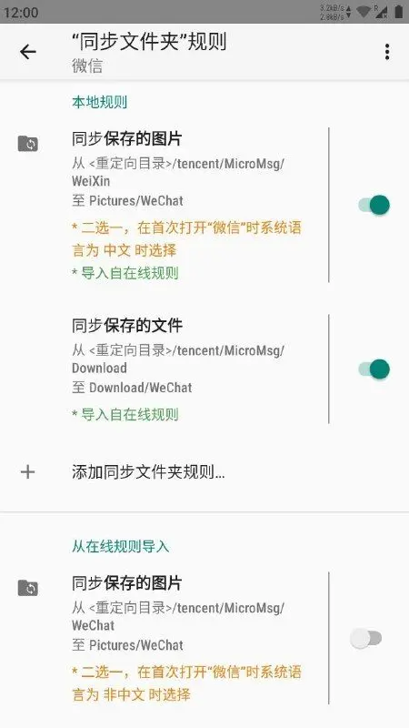 其次是「同步文件夹」规则。