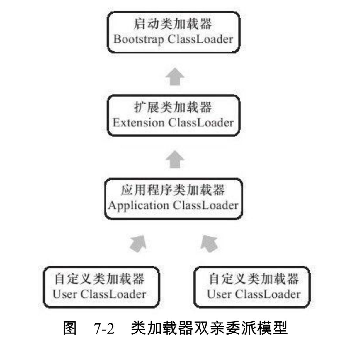 他们是相互配合工作的,如果类加载之间的层次是下图这种关系,那么就是双亲委派模型