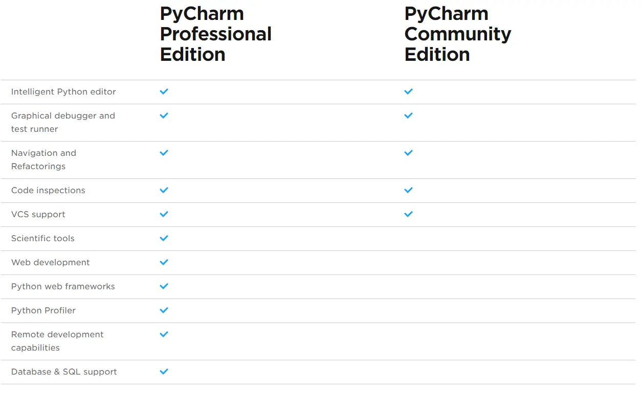 PyCharm 有分两个版本,一个是社区版(免费功能有限),一个是专业版(有一些增强功能),详细差异你可以参考这个图,一般来说,社区版用作学习用途是没有问题的。