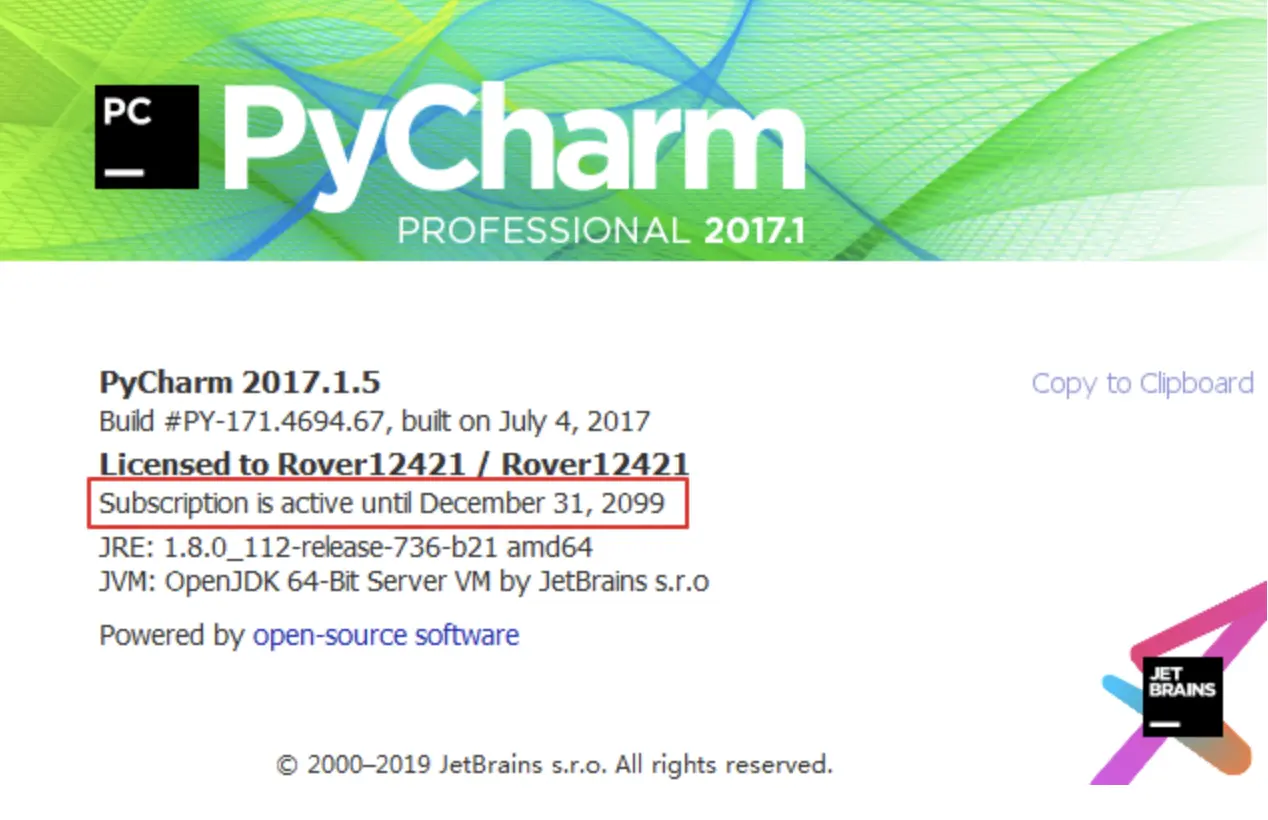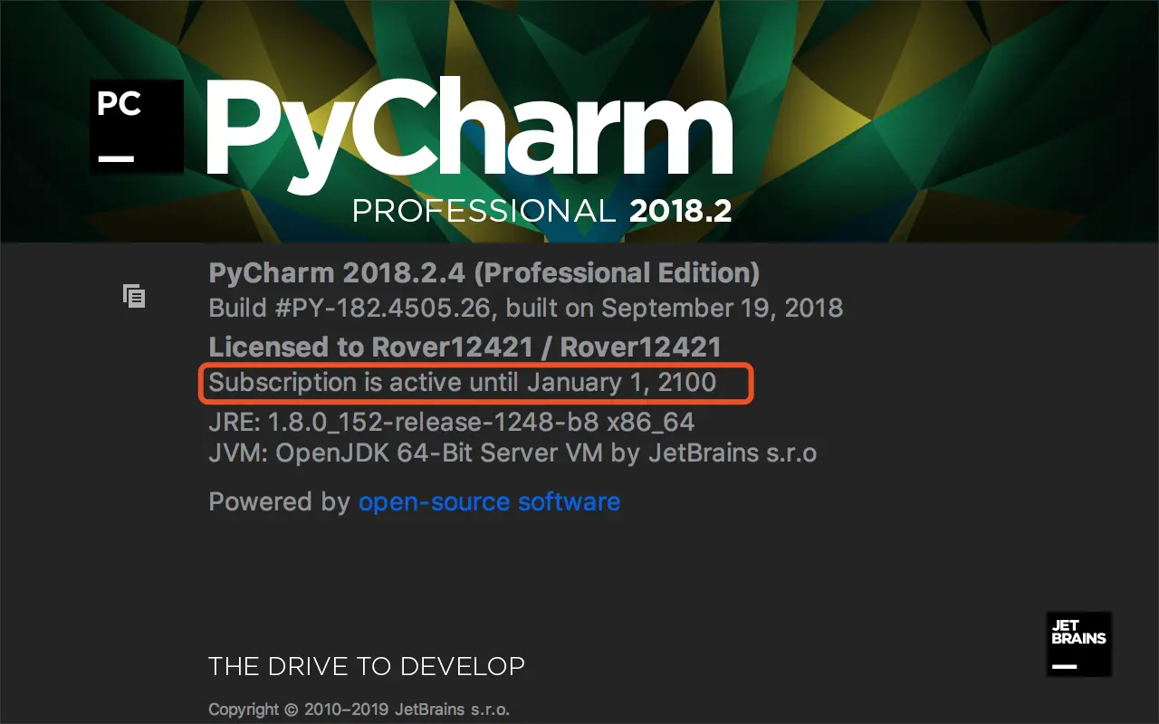 如果需要使用专业版,网上也有一些注册服务器使用,非常方便,缺点是过一段时间,可能就会失效。这里有一种一劳永逸的方法,但可能仅对早期的 PyCharm 版本有效,可以实现永久激活(到 2099 / 2100年,一定意义上是永久了吧)。