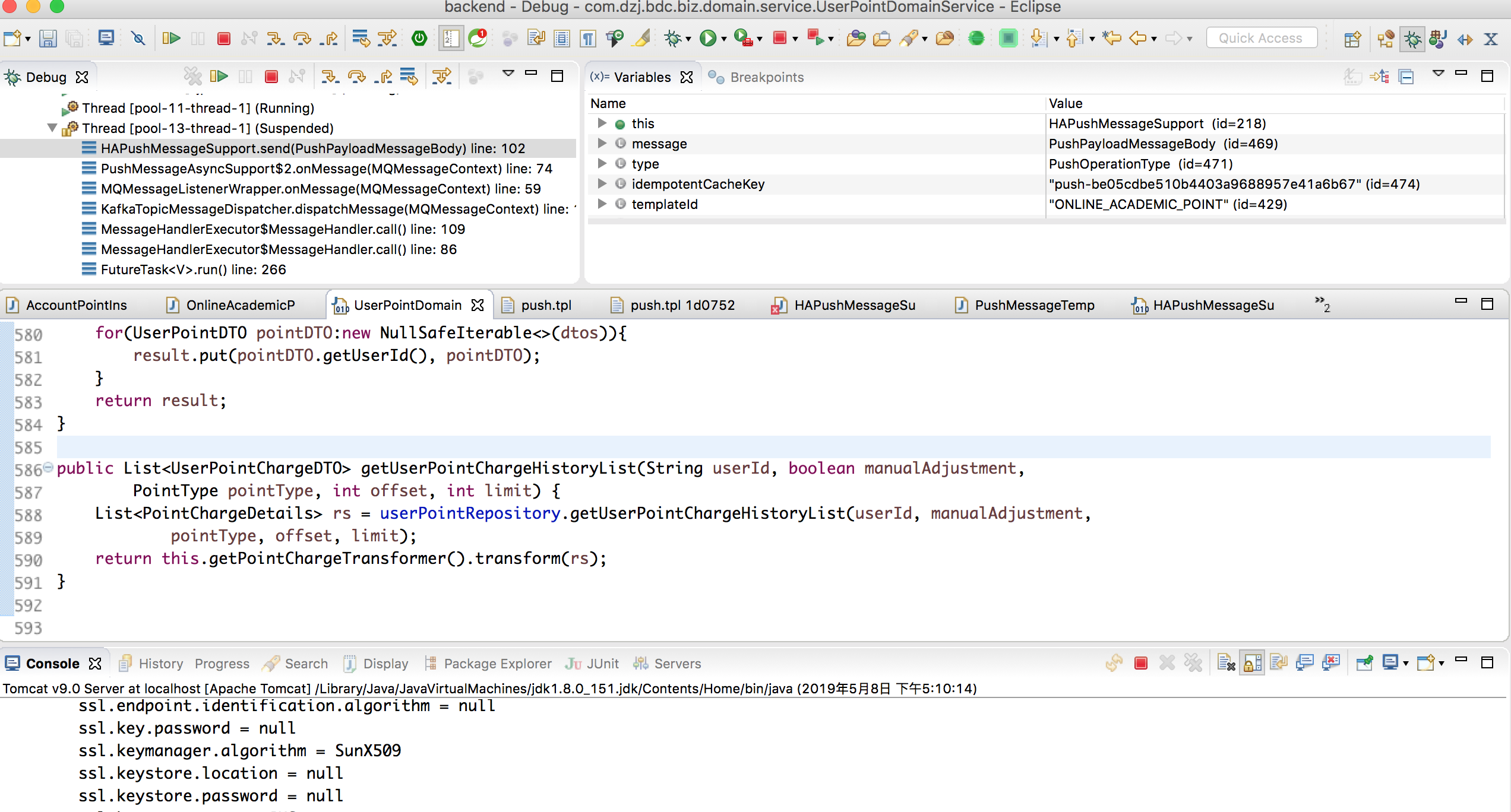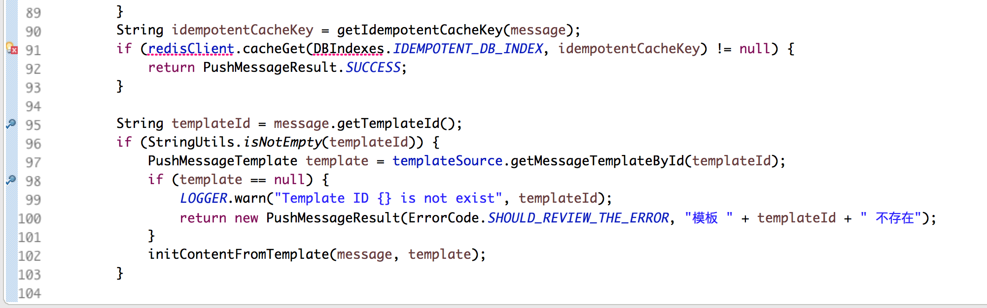 排查问题,首先查看消息模版ID没有书写错误,把消息服务ag服务stop,排查本地服务是否能加载到模版。debug调试,找到日志显示的代码打断点调试。