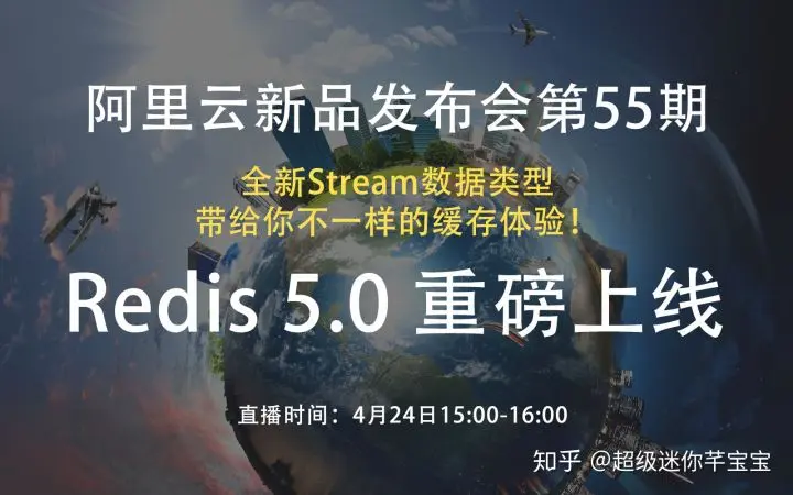- 2019年04月24日15时,阿里云 Redis 5.0 重磅上线,全新 Redis 5.0 缓存数据库搭配Stream 数据类型及多项企业级特性,带给你不一样的缓存体验!本次分享将介绍Redis 5.0的新增功能和特性,以及新增数据结构stream的应用场景和使用介绍,带您体验 Redis 5.0 的新功能和新玩法。查看产品查看更多