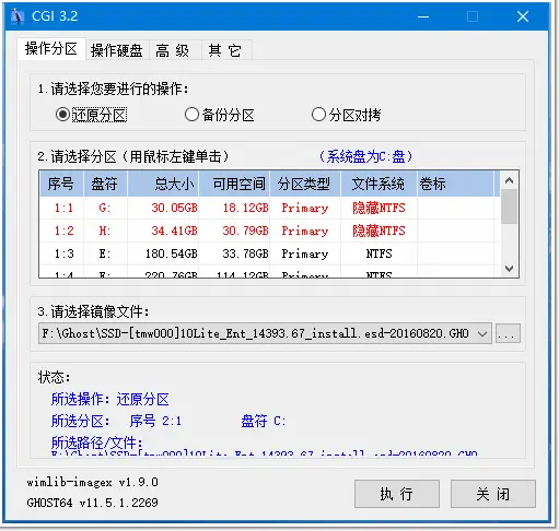 - 进入 PE 系统,打开 CGI 备份还原工具。