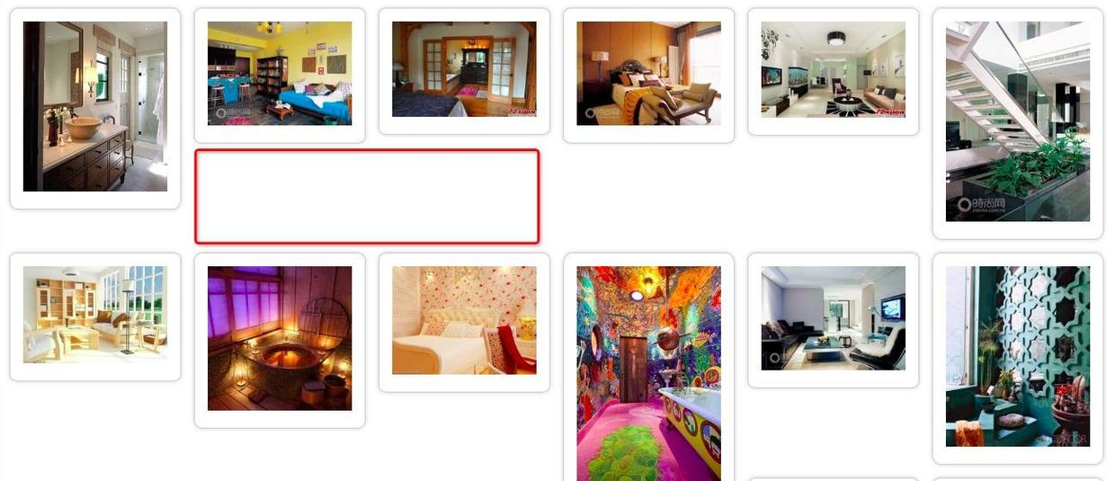 复制了html打开页面后,会发现,很有地方有空白,是因为浮动导致的,下面咱们就用js来实现瀑布流效果。