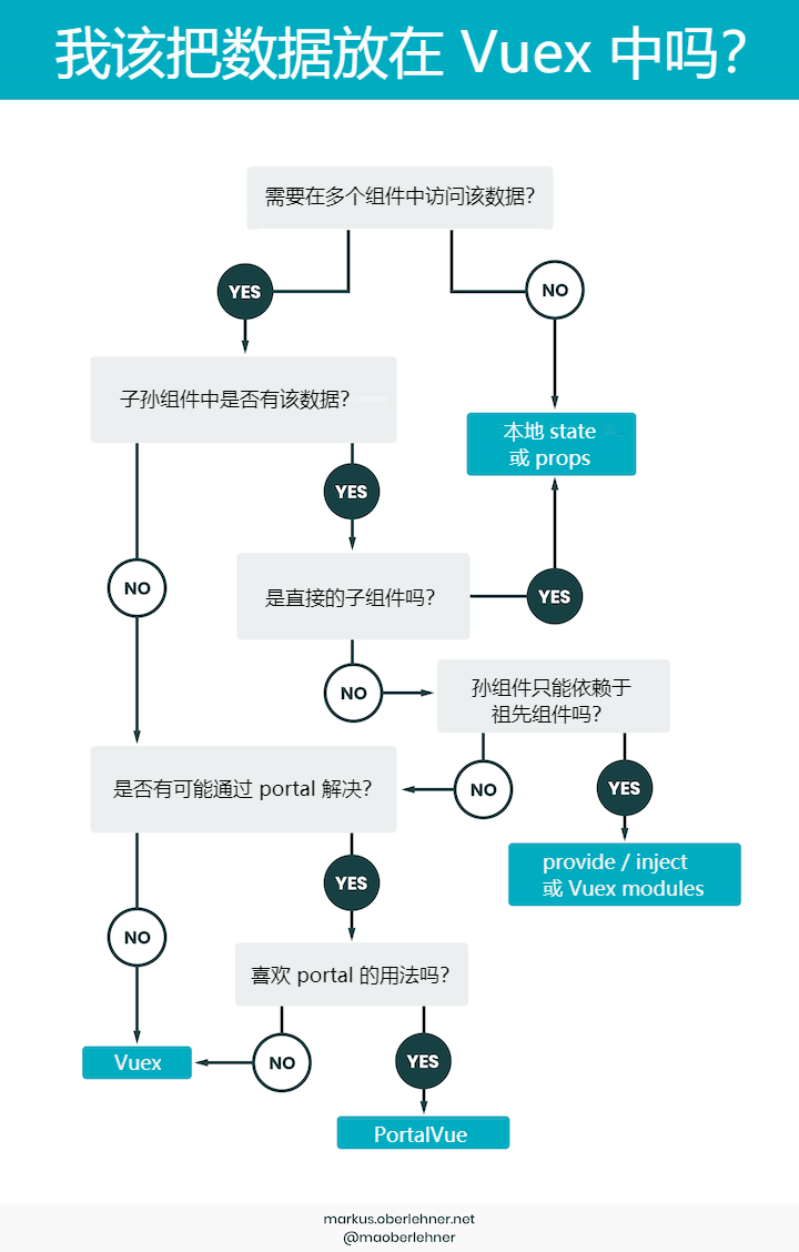 如果你已经决定了使用 Vuex 管理应用中的状态,那么每次增加一个新组件,你就得做一次是否将它的状态存入 Vuex 的判断。如果你是 Vuex 的新手,很可能会禁不住用 Vuex 做所有的事 -- 既然有这个玩意,为啥不用呢?