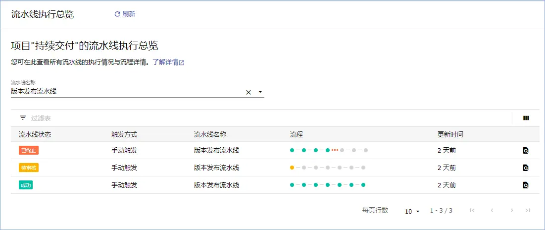 - 部署流水线模块新增流水线执行总览页面,支持查看流水线的执行情况、流程详情以及审批历史。