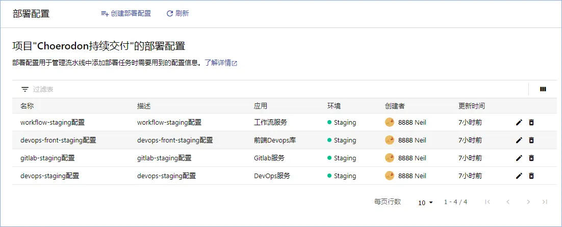 - 部署流水线模块新增部署配置页面,支持在此创建部署配置用于流水线中添加自动部署任务时选择。