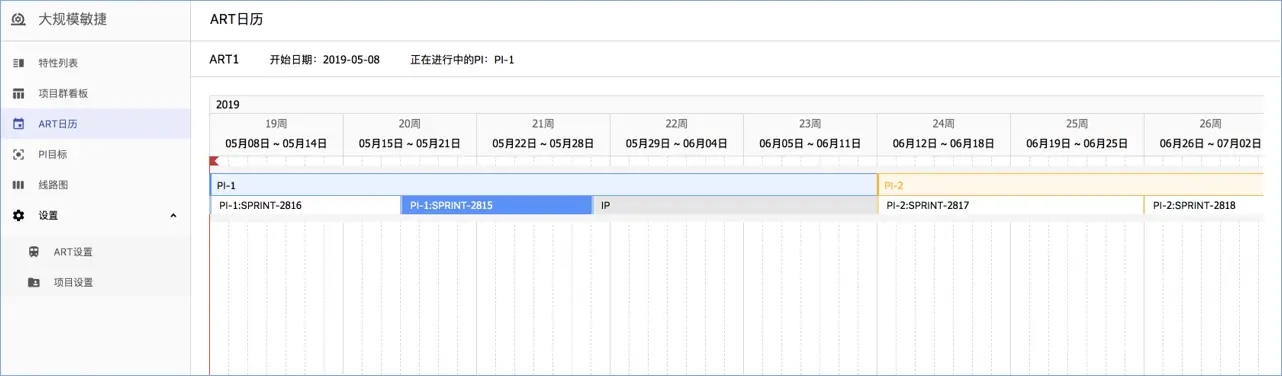 - 新增项目群ART日历,支持查看正在进行中的ART的PI规划以及PI下的冲刺规划。ART日历展示的当前进行中的这列火车的节奏,通过日历可以看到当前ART处于哪个PI,团队处于哪个迭代等信息。