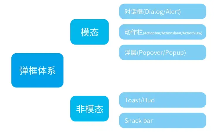 弹框是最主要的反馈方式。弹框可以分为模态弹框和非模态弹框,它们最大的区别就在于是否强制用户交互。模态弹框会打断用户当前的操作流程,用户不在弹框上操作的话,其余功能都使用不了。所以模态弹框都是用于展示优先级最高的信息。一般出现在用户在进行有风险性,不可逆的操作。例如删除、退出登录等。