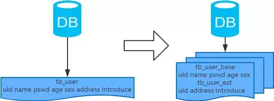 1、概念:以字段为依据,按照字段的活跃性,将表中字段拆到不同的表(主表和扩展表)中。