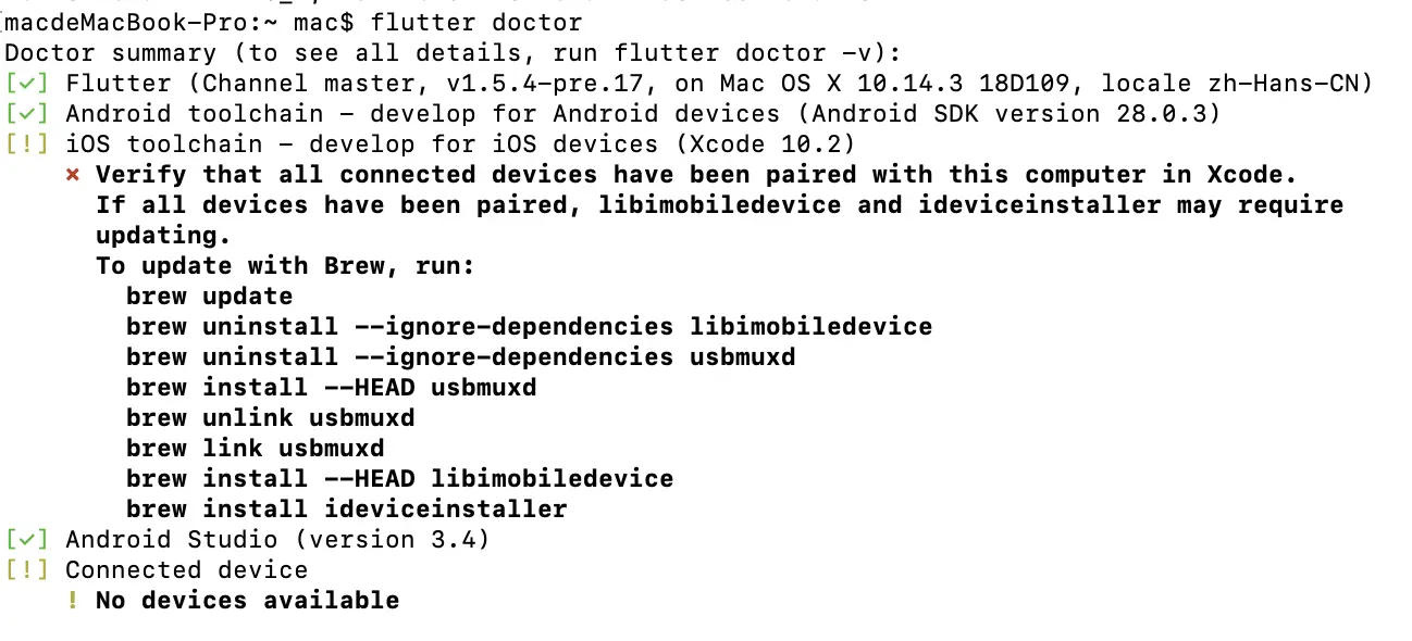 brew install ideviceinstaller然后输入flutter doctor命令就如下图所示:
