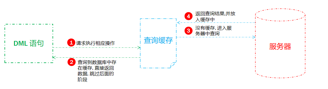 连接成功之后,即开始要正式执行select语句了, 但是在执行查询之前, mysql会去看下有没有该条语句的查询缓存内容,如果有缓存 直接从缓存中读取并返回结果, 不需要在执行后面的步骤, 结束查询操作. 如果没有缓存则接着往后执行,并将执行语句和结果保存到缓存中