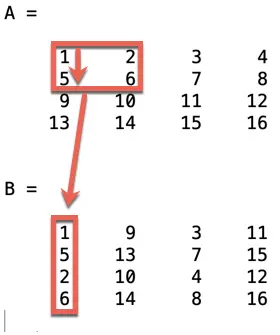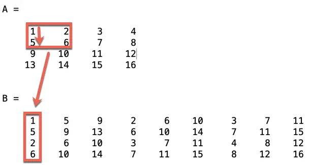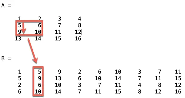 B = im2col(A, [2 2])