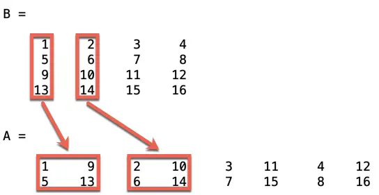 - B = im2col(A, [m n], 'distinct')