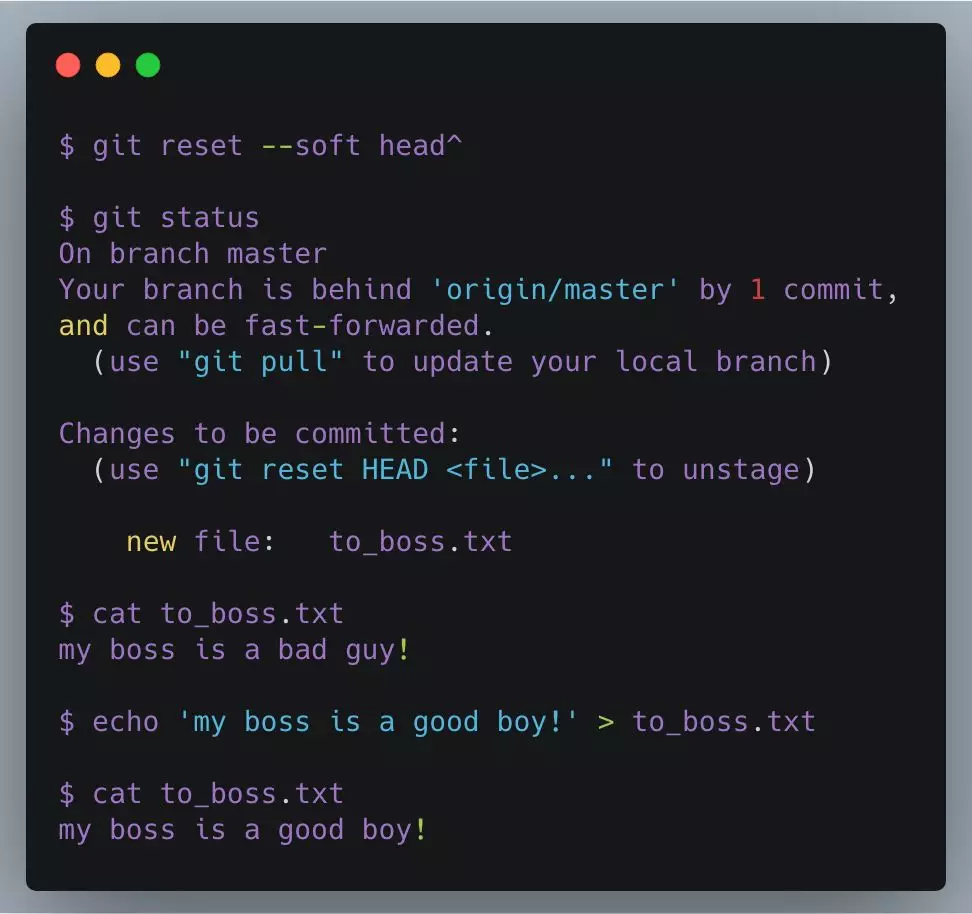 好了,刚刚我们“不小心”diss了我们的老板,要是被发现就完了,所幸还没有push,要快点撤消这些提交,再拍下马屁才行。