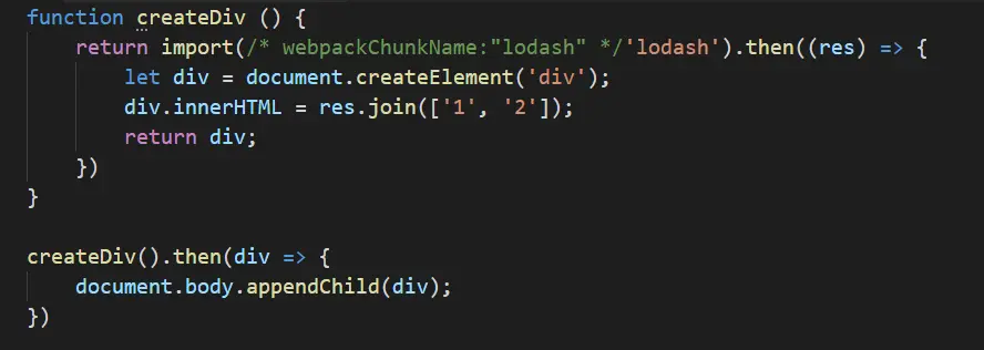 比如我们引入了lodash库,打包生成的chunk(js文件)中,至少有一个chunk(js文件)引入了lodash,就对lodash做代码分割。
