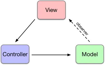 用户首先通过View发起交互,View调用Controller执行业务逻辑,Controller修改Model,然后View通过观察者模式检测到Model的变化(具体表现形式可以是Pub/Sub或者是触发Events),刷新界面显示。