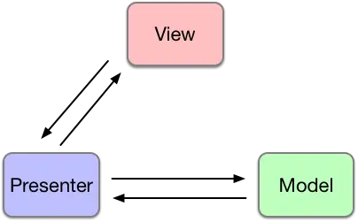 为了克服MVC的上述缺点,MVP应运而生。在MVP中,View和Model是没有直接联系的,所有操作都必须通过Presenter进行中转。View向Presenter发起调用请求,Presenter修改Model,Model修改完成后通知Presenter,Presenter再调用View的相关接口刷新界面。这样,View就不需要监听具体Model的变化了,只需要提供接口给Presenter调用就可以了。MVP具有以下优点: