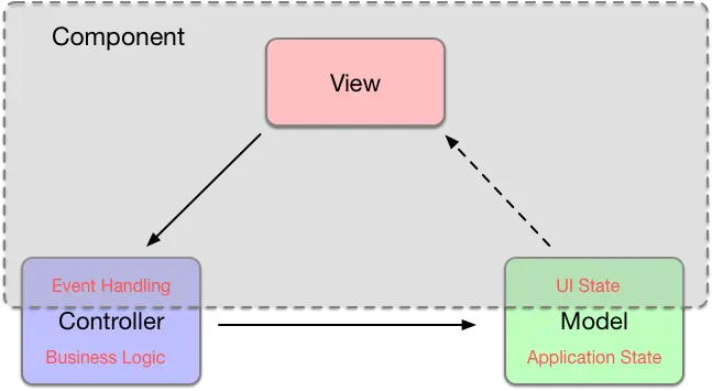 在传统的MVC设计中,Model中不仅要存储应用程序数据,还需要存储UI状态。另一方面,Controller中不仅要处理业务逻辑,还需要实现各种事件处理逻辑。如果把这部分内容抽出来,和View组合在一起,就变成了“组件”。这样一来,各个模块都可以各司其职,专注于自己的领域,代码的可读性和复用性都可以得到提高。