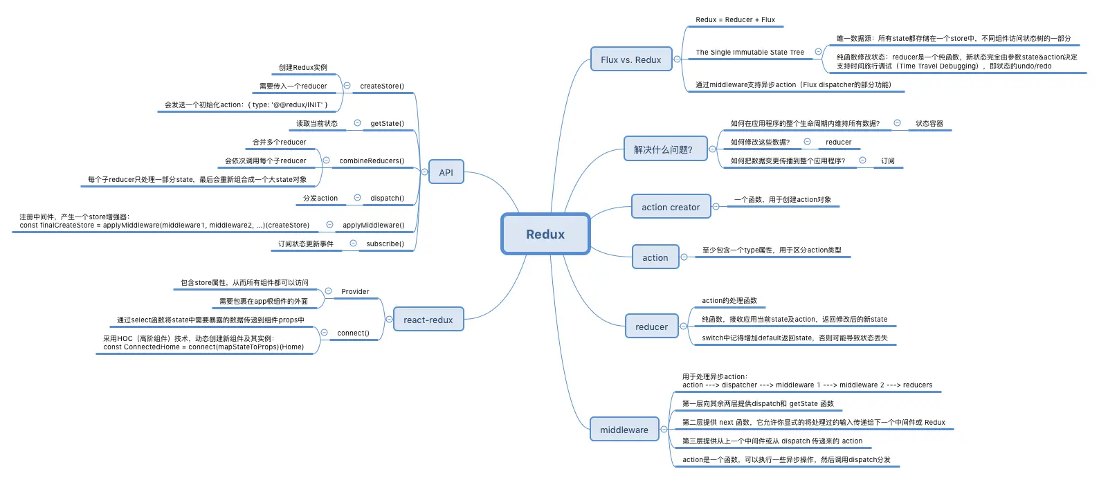 最后,以一张思维导图结束本篇文章,下一篇介绍redux-saga。