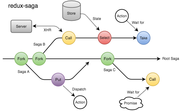 不过,幸运的是,redux-saga已经帮我们封装好了这一切,你只要专心实现异步调用逻辑就可以了。