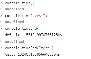 console.time("name"),带参就是定时器的名字,开始计时,不带参就是默认的defaul console.timeEnd("name"),结束“name”计时器