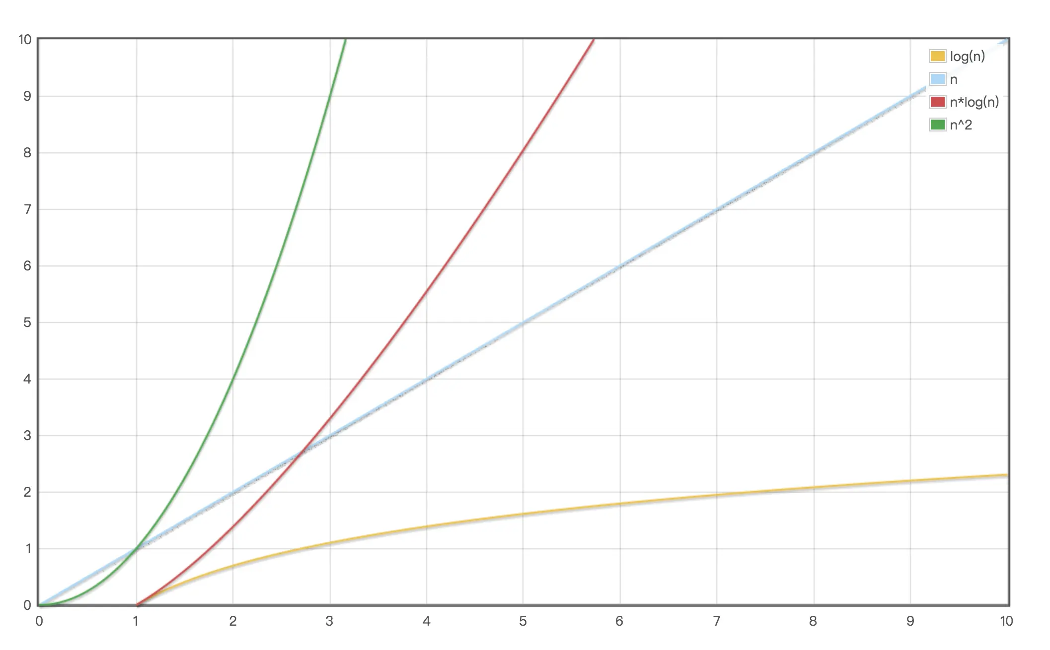 当复杂度为线性阶和对数阶的代码嵌套时,使用乘法法则可知此时的复杂度就为线性对数阶,这里不做过多说明。