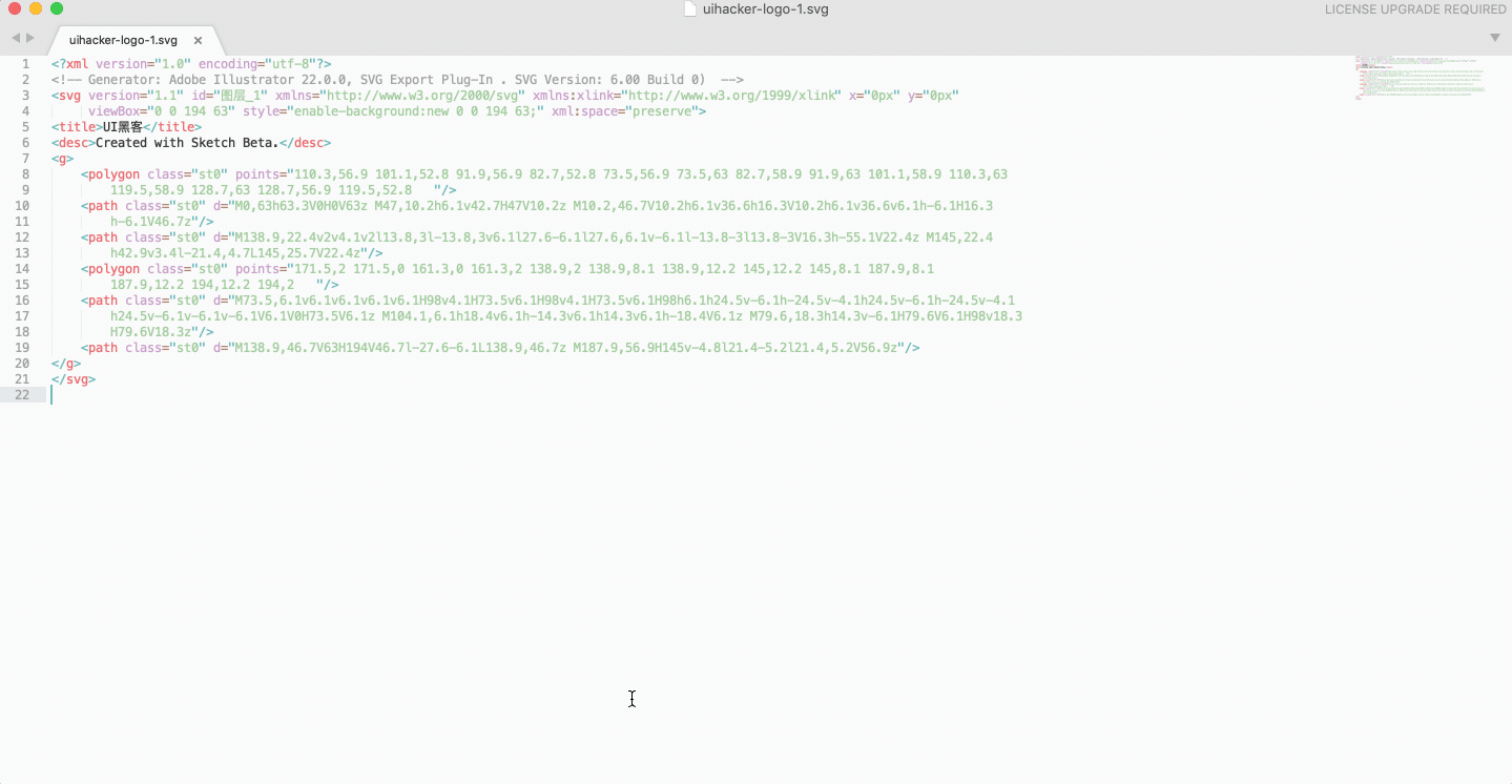 本次Sketch 55版本新增了SVG代码直接粘贴为SVG形状这个功能。只要拥有SVG图标对应的代码,就可以直接复制到Sketch中显示为形状。比如下面这个例子,直接把UI黑客logo的SVG代码复制到Sketch中即可使用。