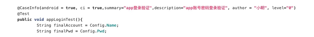 其次,平台为了快速识别仓库中的有效用例,在 Java 层提供用于生成用例描述的注解,帮助用例编写同学快速生成用例描述文件。