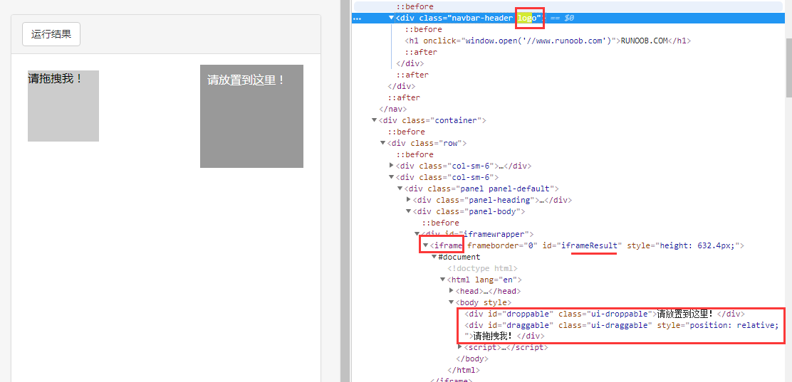 整个拖拽是在一个iframe中,但是如果我们在这个iframe中想要获取外面的那些元素,获取时可能汇报错误,比如在拖拽那个iframe中尝试获取logo class,此时汇报找不到该元素的错误: