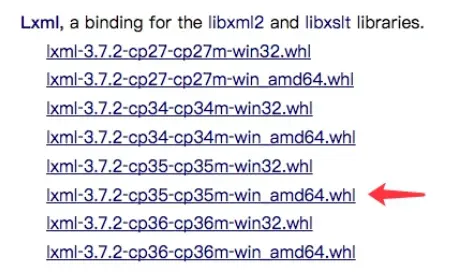 假如是 Python3.5版本, WIndows64位系统,那就找到