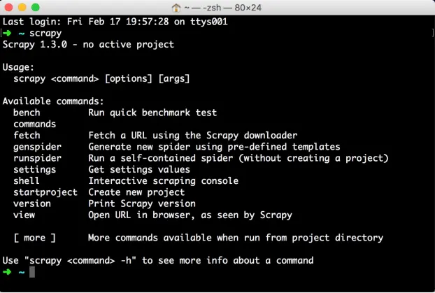 安装之后,在命令行下输入scrapy ,如果出现类似下方的结果,就证明Scrapy安装成功。