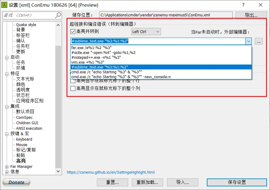 配置点击编译错误文件链接打开指定编辑器