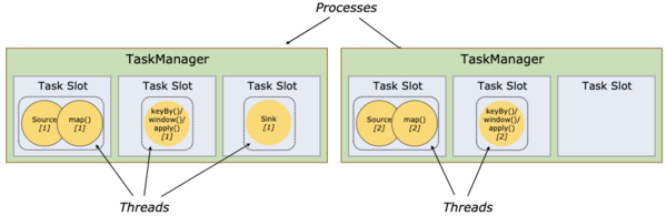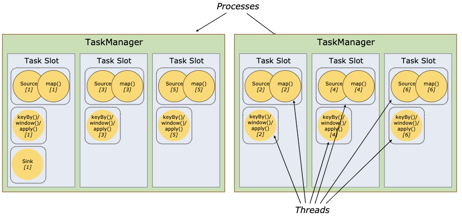 - TaskManagers(也称为 workers)真正执行dataflow中的tasks(更准确的描述是,subtasks),并且对 streams进行缓存和交换。