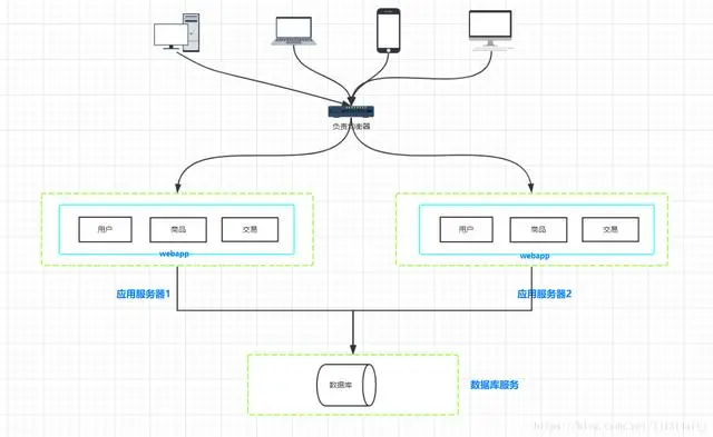 随着访问量的继续增加,单台应用服务器已经无法满足需求。在假设数据库服务器还没有遇到性能问题的时候,我们可以增加应用服务器,通过应用服务器集群将用户请求分流到各个服务器中,从而继续提升负载能力。此时多台应用服务器之间没