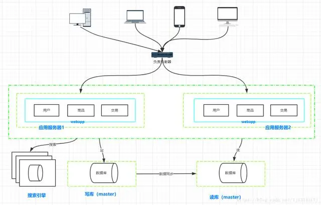 数据库做读库的话,常常对模糊查找效率不是特别好,像电商类的网站,搜索是非常核心的功能,即便是做了读写分离,这个问题也不能有效解决。那么这个时候就需要引入搜索引擎了使用搜索引擎能够大大提高我们的查询速度,但是同时也会带来一些附加的问题,比如维护索引的构建。