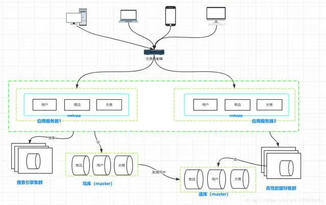 架构演变到这里,并不是终点。上面我们把应用层的性能拉上来了,但是数据库的负载也在慢慢增大,那么怎么去提高数据库层面的负