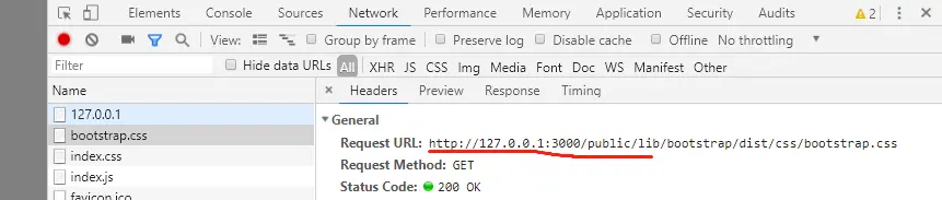 文件地址以/public/开头,这里的/表示请求的根路径,浏览器在发送请求的时候会自动替换成http://127.0.0.1:3000/。