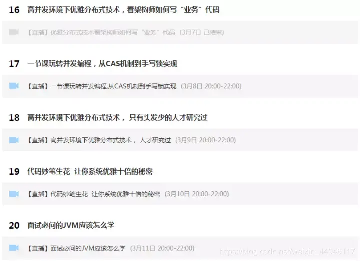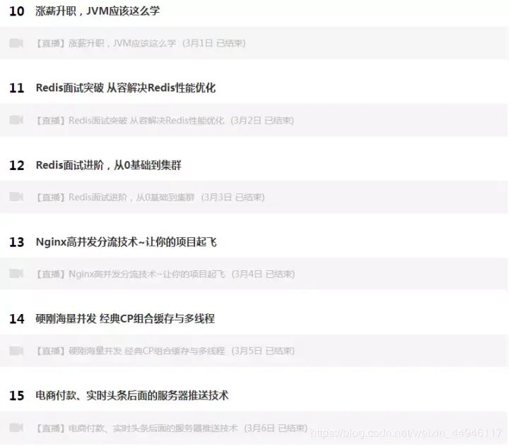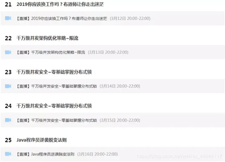 这期课程我们一共安排了25节免费架构进阶课程,课程老师是由六位在一线互联网公司有这十余年工作经验的老师讲课,同时还准备了一份免费的BAT面试真题,有需要的朋友可以找我免费获取已经直播完的往期精品视频录播六节和面试整体汇总以及高清架构学习思维导图(包括Dubbo、Redis、Netty、zookeeper、Spring cloud、分布式、高并发等架构技术资料)。