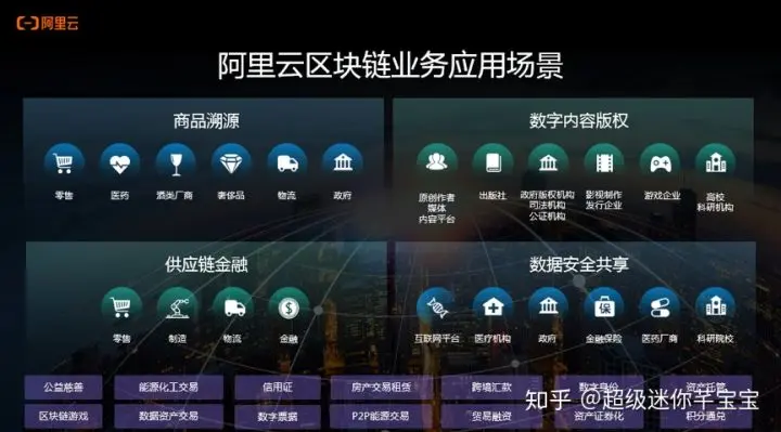 去年8月,阿里云宣布联合支付宝投入区块链基础设施建设,目前已服务政府、零售、制造、金融、互联网、传媒、医疗等行业企业,例如,双方共同研发的区块链医疗解决方案已经成功应用于武汉中心医院的电子处方,能够打通医院开具处方、药师审方、药品配送、药品支付、流程监管等多个环节。