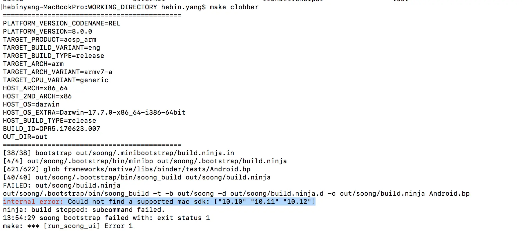 坑点:由于Mac的SDK默认只有14的版本,编译需要的是14以下的SDK,因此执行 make clobber 时会报如下错误:
