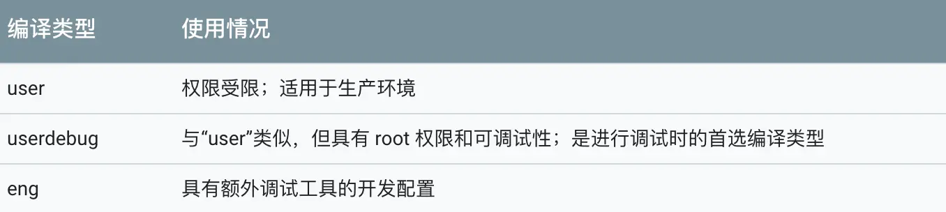 所有编译目标都采用 BUILD-BUILDTYPE 形式,其中 BUILD 是表示特定功能组合的代号。