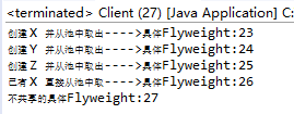 从这个结果我们可以看出来,第一次创建X、Y、Z时,都是先创建再从池中取出,而第二次创建X时,因为池中已经存在了,所以直接从池中取出,这就是享元模式。