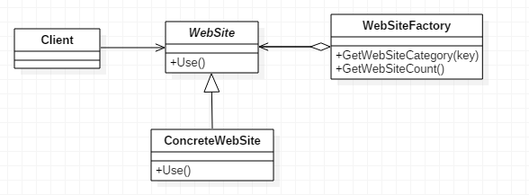可以看出,虽然我们做了6个网站,但网站分类只有2个。这样基本算是实现了享元模式的共享对象的目的,但想想上面提到的内部状态和外部状态,这里实际上没有体现对象间的不同,只体现了它们的共享部分。