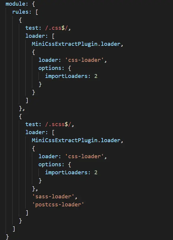 然后配置module,把所有的style-loader替换为MiniCssExtractPlugin.loader,其他配置项不变。